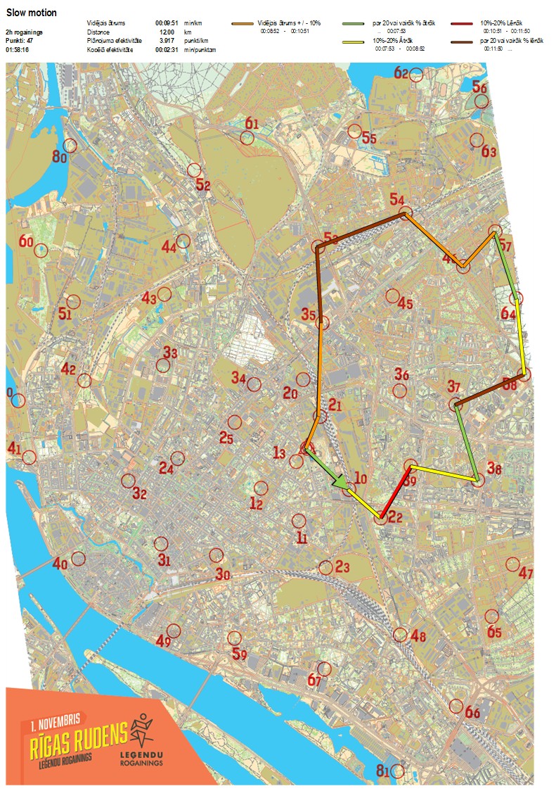 | Order No. | CP No. | Time | Points | Total points | Stage time | Total time | Stage distance | Total distance | min/km | min/pts | Split place |
