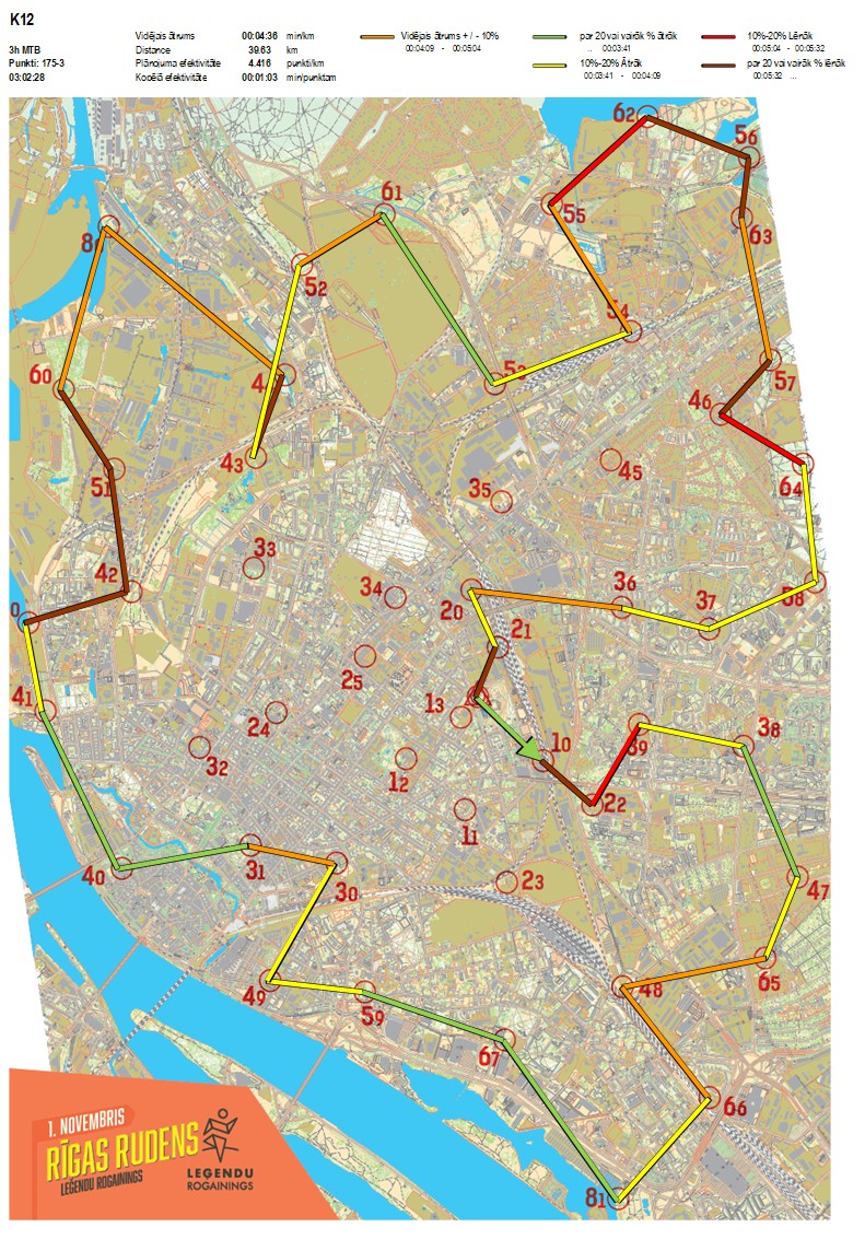 | Order No. | CP No. | Time | Points | Total points | Stage time | Total time | Stage distance | Total distance | min/km | min/pts | Split place |