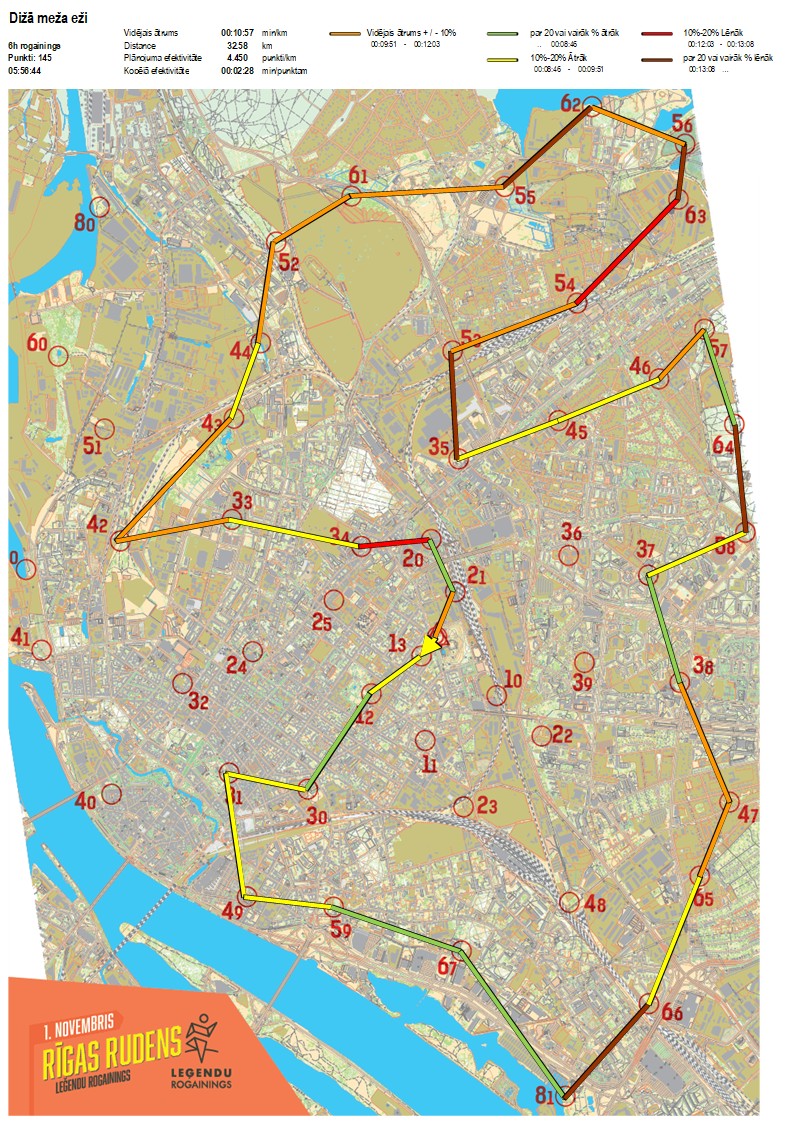 | Order No. | CP No. | Time | Points | Total points | Stage time | Total time | Stage distance | Total distance | min/km | min/pts | Split place |