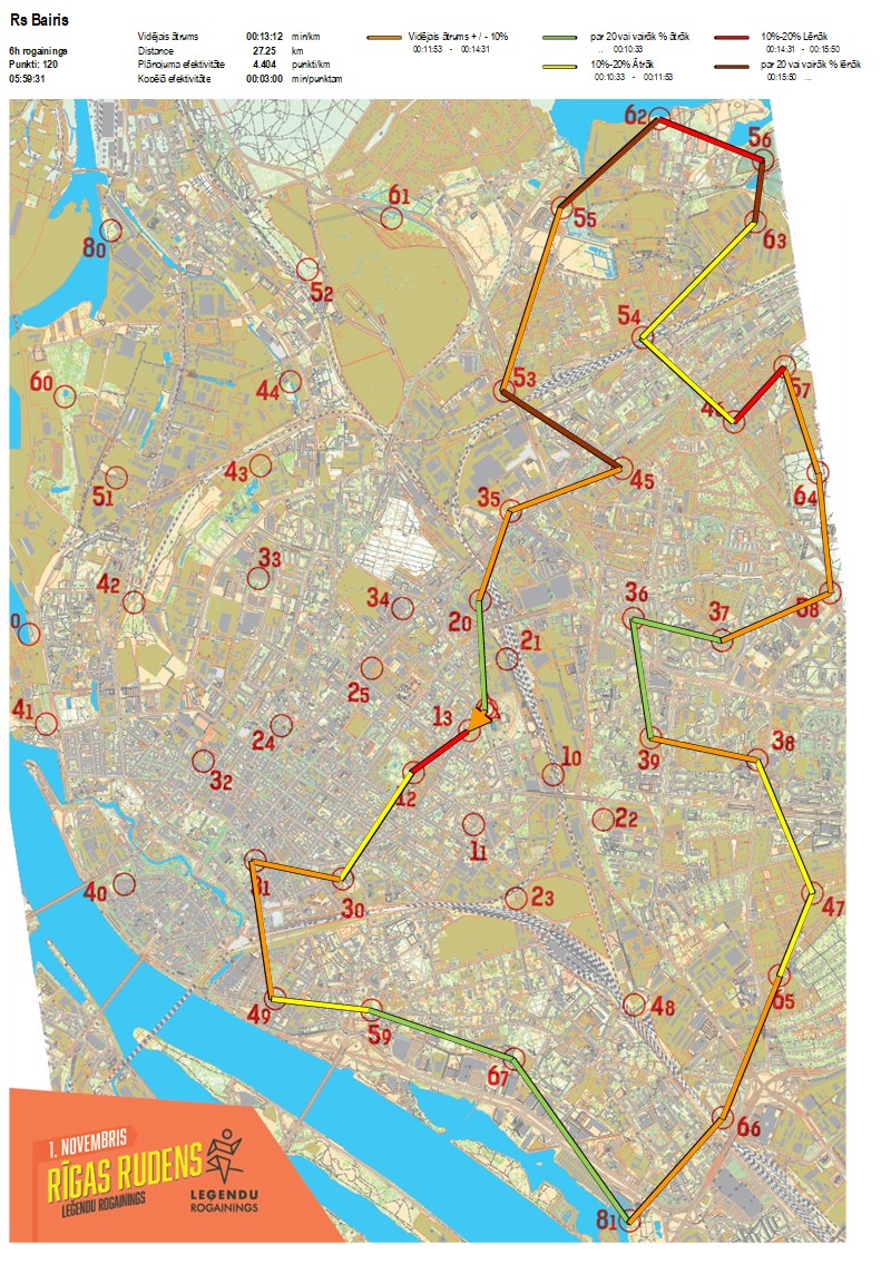 | Order No. | CP No. | Time | Points | Total points | Stage time | Total time | Stage distance | Total distance | min/km | min/pts | Split place |
