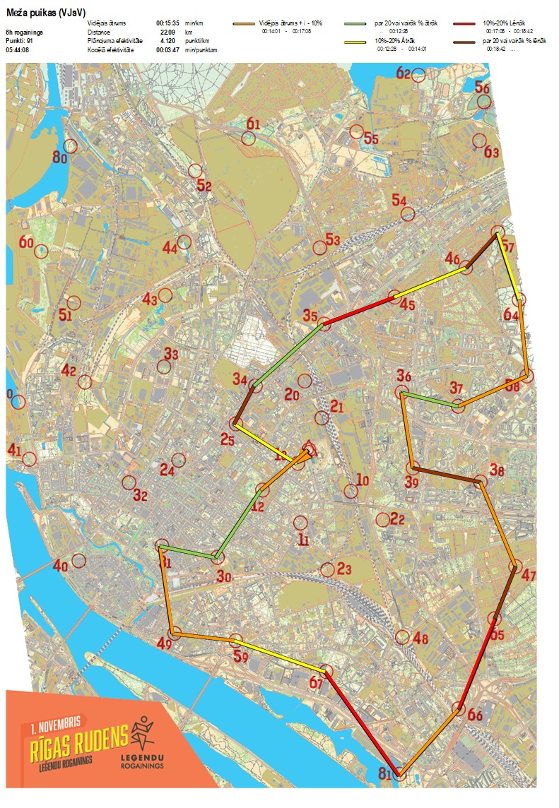 | Order No. | CP No. | Time | Points | Total points | Stage time | Total time | Stage distance | Total distance | min/km | min/pts | Split place |