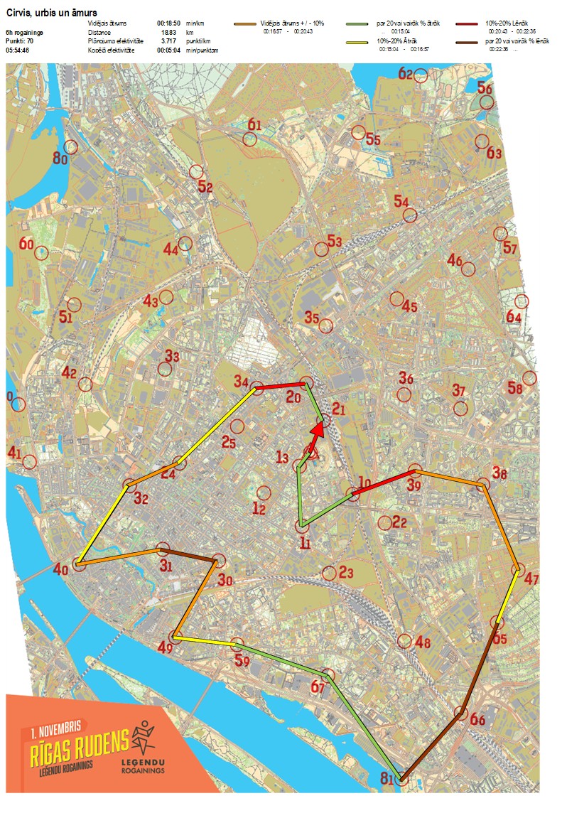 | Order No. | CP No. | Time | Points | Total points | Stage time | Total time | Stage distance | Total distance | min/km | min/pts | Split place |