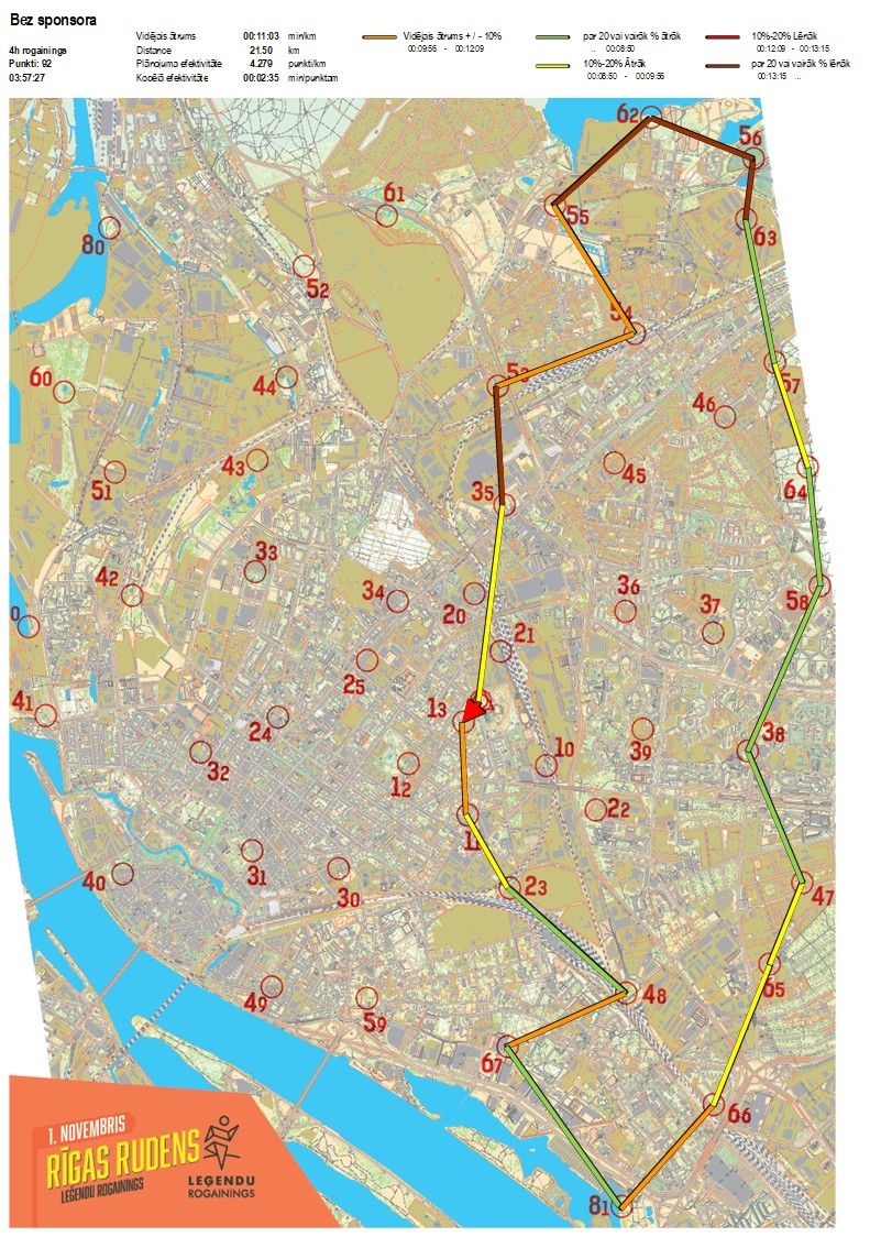 | Order No. | CP No. | Time | Points | Total points | Stage time | Total time | Stage distance | Total distance | min/km | min/pts | Split place |