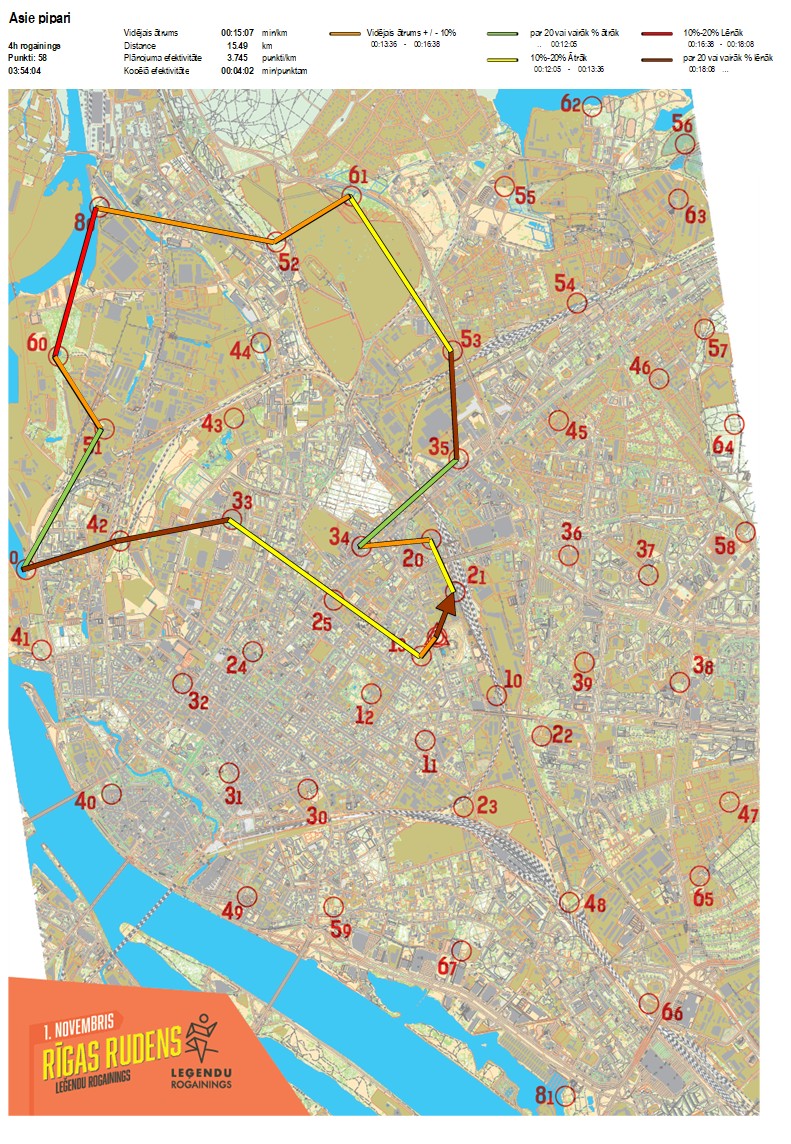| Order No. | CP No. | Time | Points | Total points | Stage time | Total time | Stage distance | Total distance | min/km | min/pts | Split place |