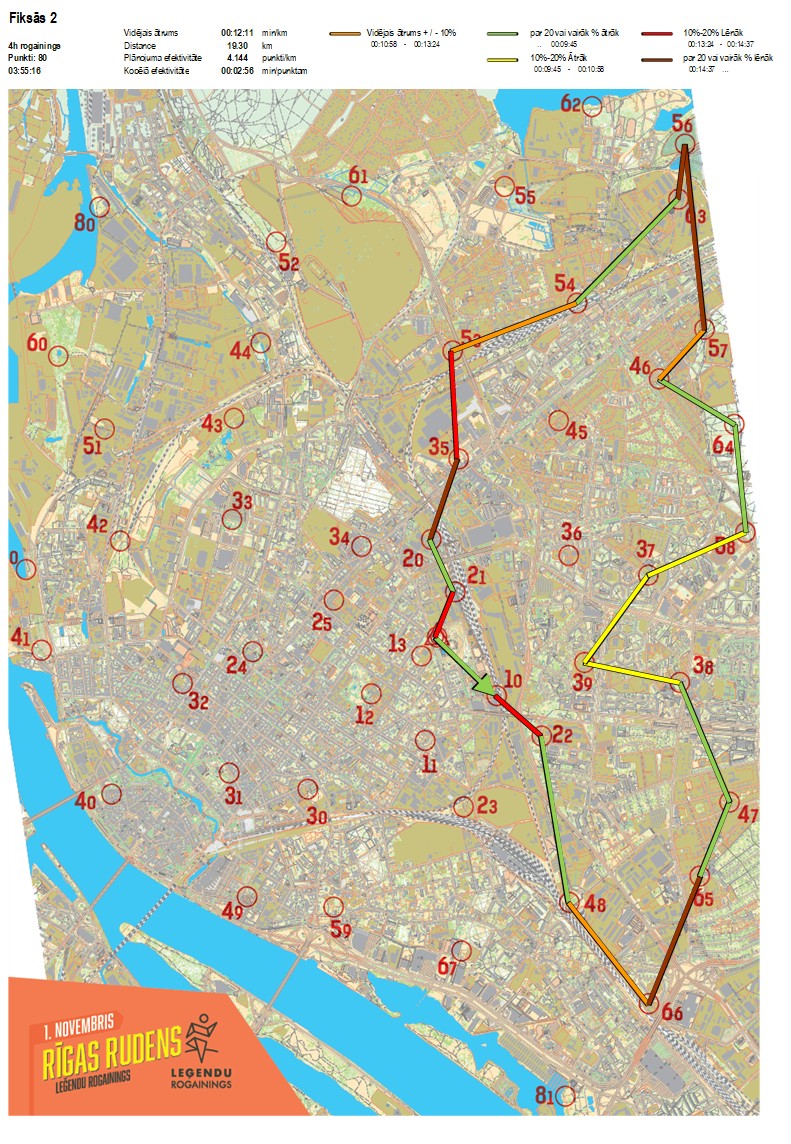 | Order No. | CP No. | Time | Points | Total points | Stage time | Total time | Stage distance | Total distance | min/km | min/pts | Split place |