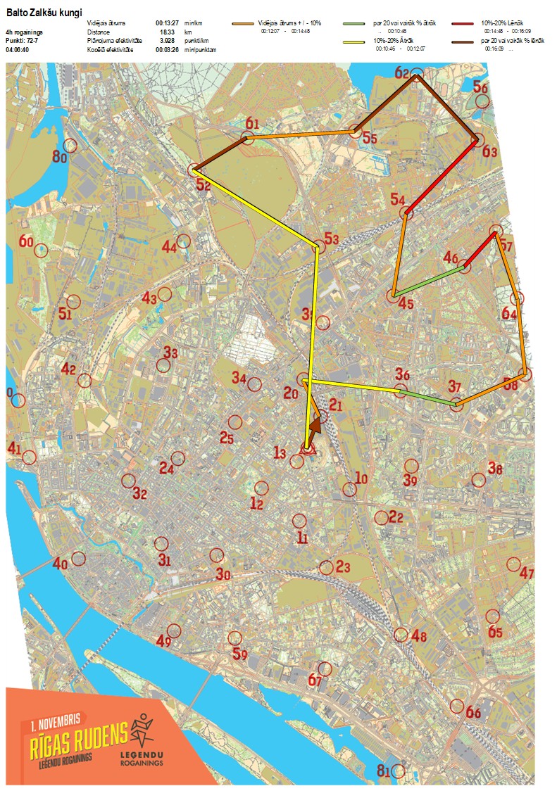 | Order No. | CP No. | Time | Points | Total points | Stage time | Total time | Stage distance | Total distance | min/km | min/pts | Split place |