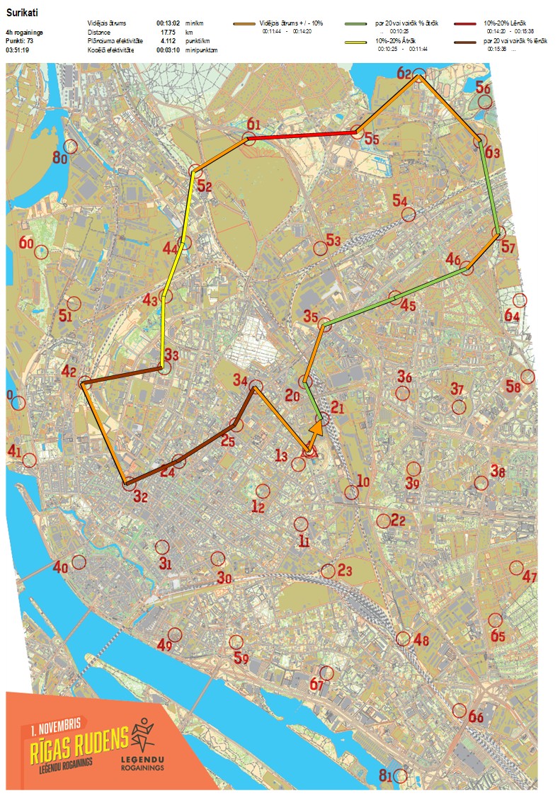 | Order No. | CP No. | Time | Points | Total points | Stage time | Total time | Stage distance | Total distance | min/km | min/pts | Split place |
