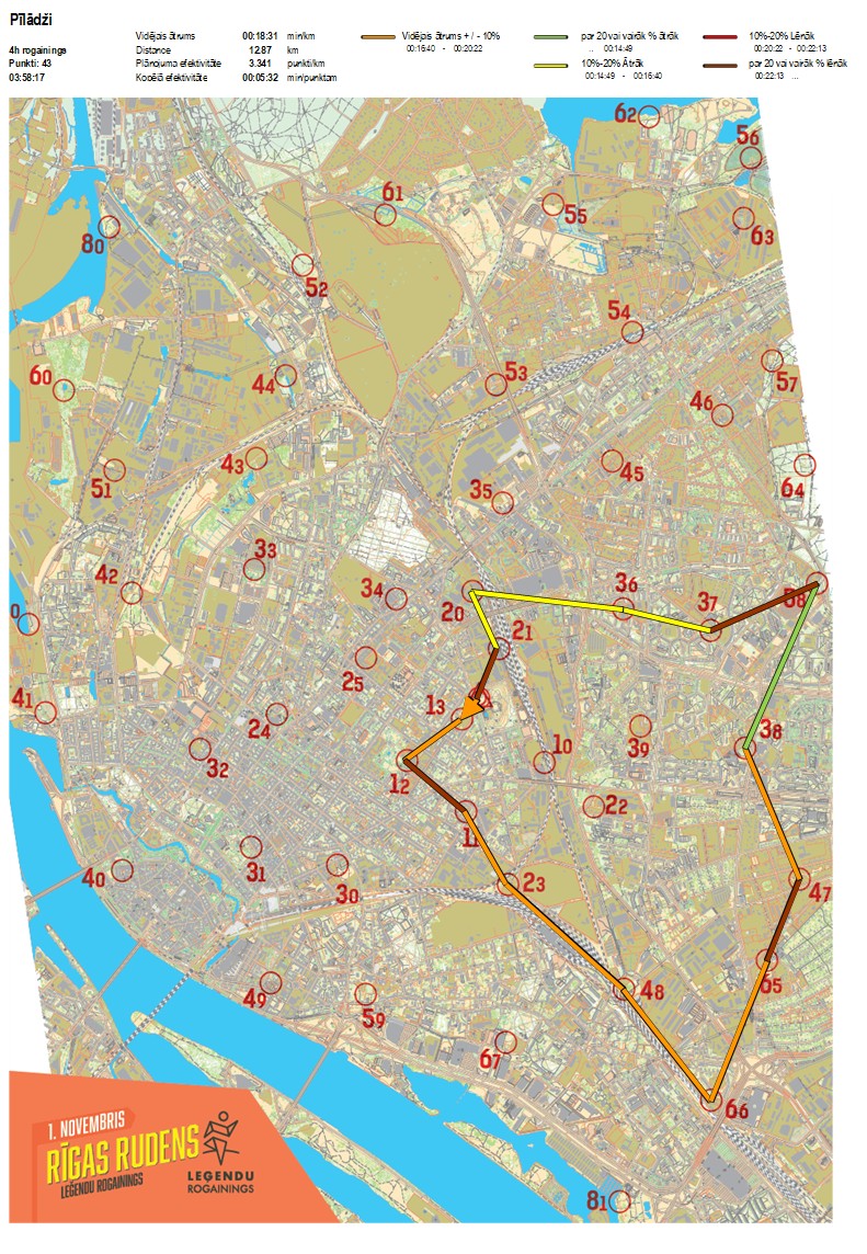 | Order No. | CP No. | Time | Points | Total points | Stage time | Total time | Stage distance | Total distance | min/km | min/pts | Split place |