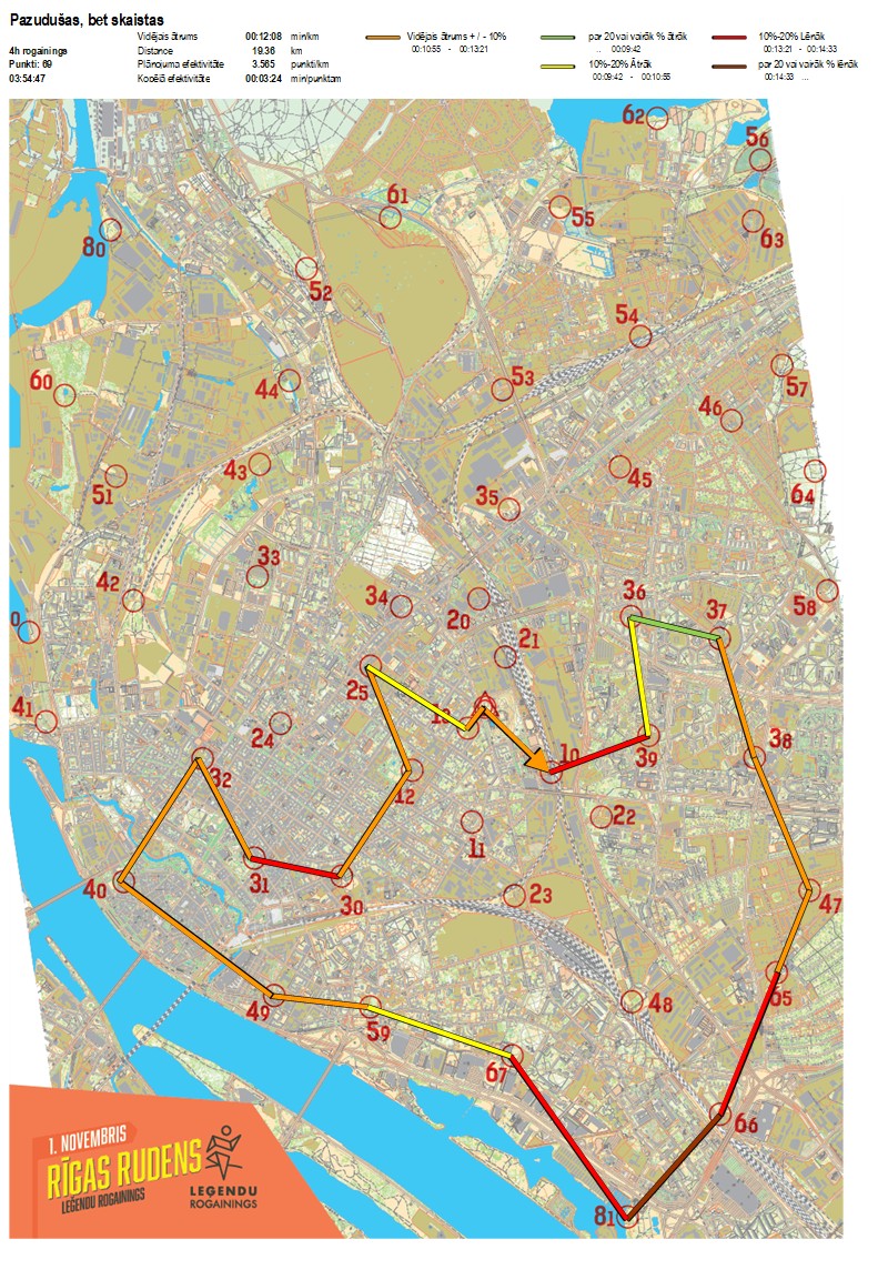| Order No. | CP No. | Time | Points | Total points | Stage time | Total time | Stage distance | Total distance | min/km | min/pts | Split place |