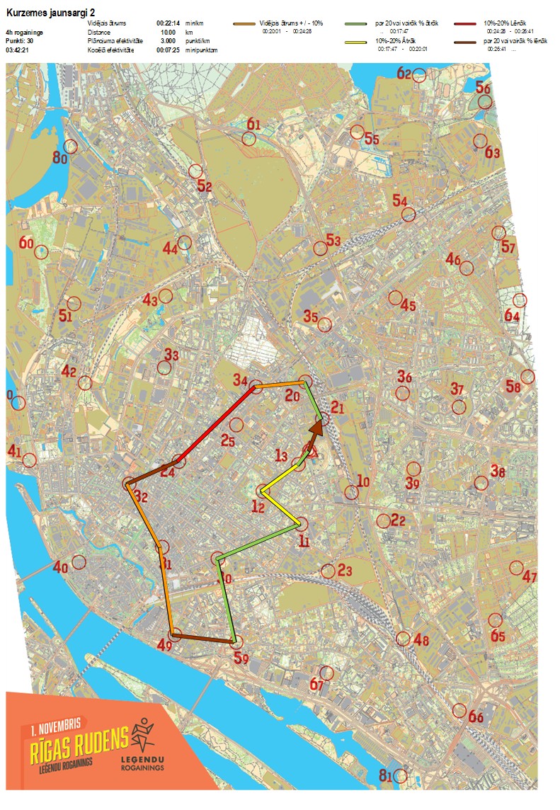 | Order No. | CP No. | Time | Points | Total points | Stage time | Total time | Stage distance | Total distance | min/km | min/pts | Split place |