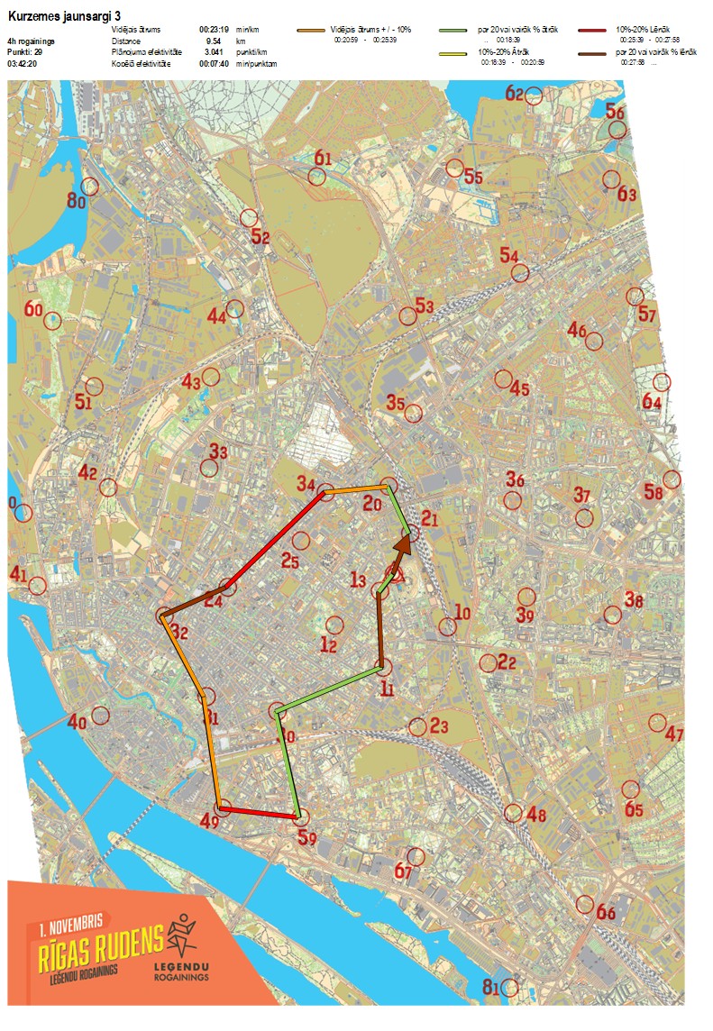 | Order No. | CP No. | Time | Points | Total points | Stage time | Total time | Stage distance | Total distance | min/km | min/pts | Split place |