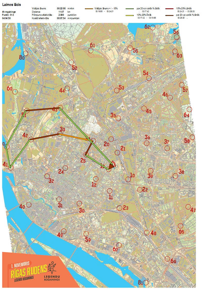| Order No. | CP No. | Time | Points | Total points | Stage time | Total time | Stage distance | Total distance | min/km | min/pts | Split place |