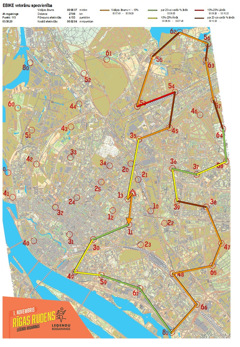 | Order No. | CP No. | Time | Points | Total points | Stage time | Total time | Stage distance | Total distance | min/km | min/pts | Split place |