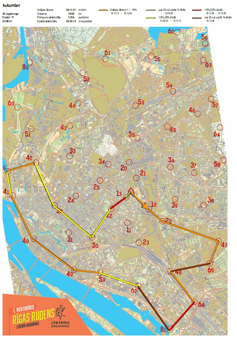 | Order No. | CP No. | Time | Points | Total points | Stage time | Total time | Stage distance | Total distance | min/km | min/pts | Split place |