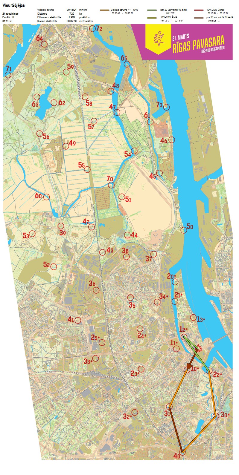 Secības nr KP nr Laiks Punkti Kopējie punkti Posma laiks Kopējais laiks Posma distance Kopējā distance min/km min/pts Vieta etapā
